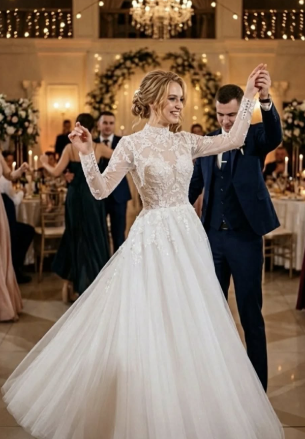 Corset en col américain transparent avec manches longues effet tatouage avec dentelle et sequins brillants et dos nu.
